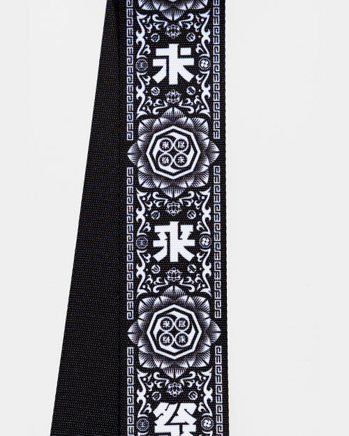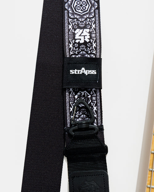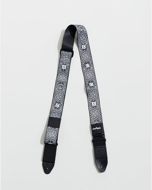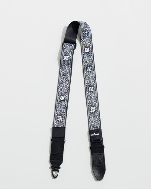 アーティスト”BRAHMAN”の30周年企画となるイベント”尽未来祭”とのコラボレーションデザイン。糸の選定から厚み・柔らかさの調整まで行い、テープ*1から自社で設計。厚すぎず肩に馴染みやすいフィット感を実現し長時間の使用でも安定性と快適さを両立。独自のスライド機構*2(実用新案登録申請中)により、ワンアクションでギターストラップからショルダーストラップへ切り替え可能。レザー*3部分は厚み1.9〜2.1mmのスムースな質感で強度と柔軟性のあるスムースレザーを使用。ブランドアイコンにもなっている型押し*4ロゴは、1.5mmの深さで刻印し、革の厚さ・温度・秒数を職人が緻密に調整して仕上げている。